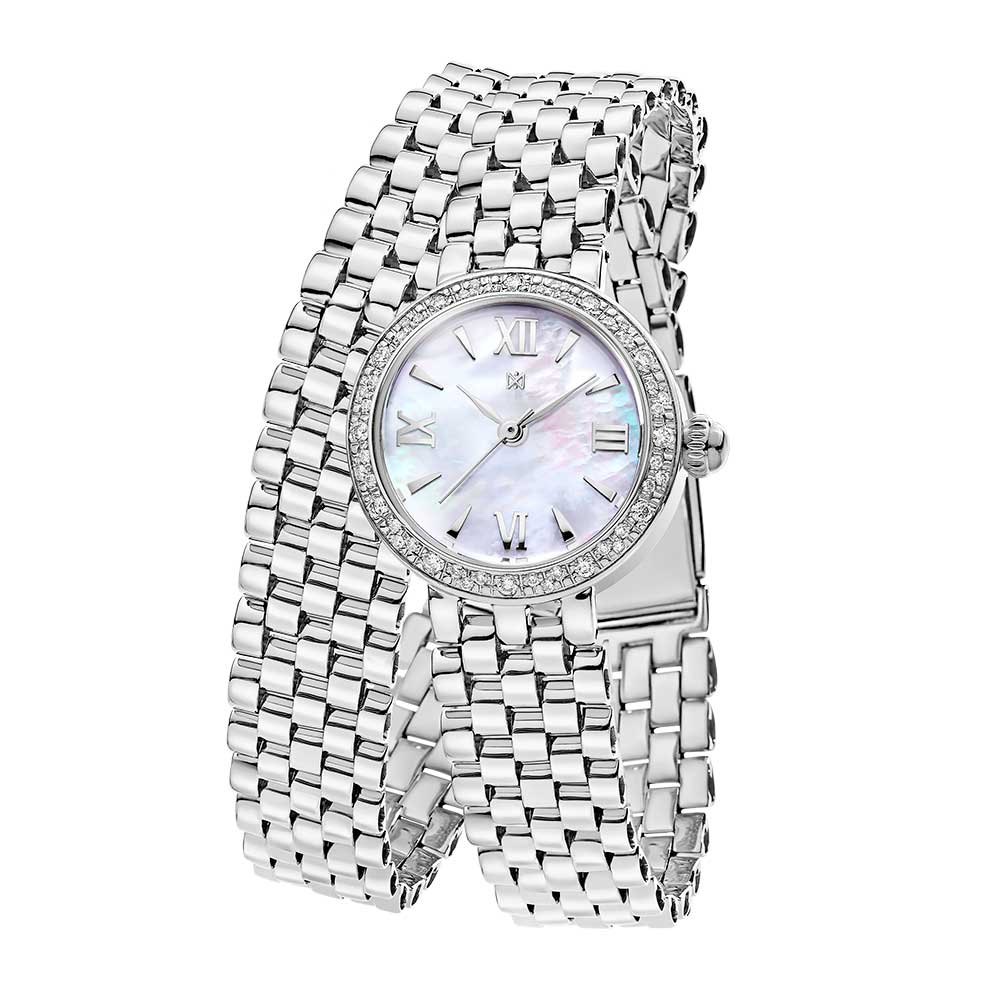 Классические женские часы на дерзком браслете в два оборота от Анжелики Реввы. Серебряный корпус украшен бриллиантами. Серебряный браслет представлен в трех вариантах длины (выбор длины не влияет на итоговую стоимость часов).