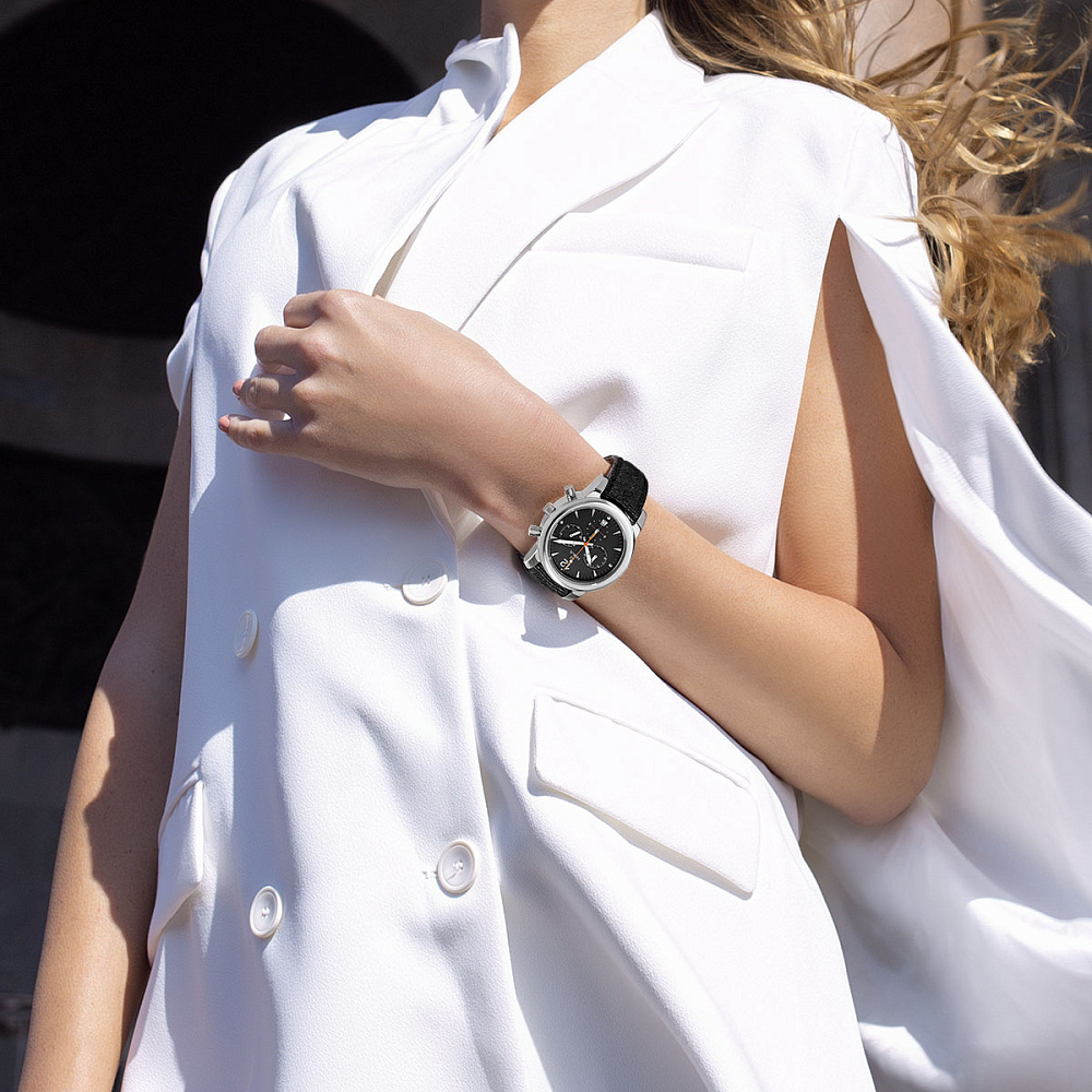 Хронограф — самая модная дополнительная функция в часах, измеряющая короткие промежутки времени. Центральная секундная стрелка превращается в секундомер, а обычная секундная стрелка прячется в нижнем счетчике